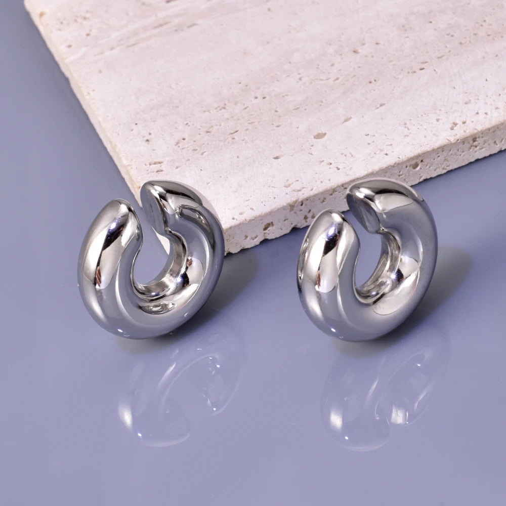 02 INS net red with stainless steel thick round tube hollow ear ring
